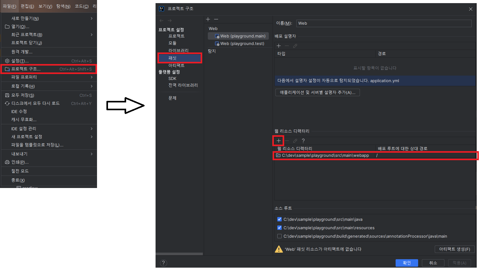 기존 프로젝트의 [src] - [main] 하위에 [webapp] 디렉토리를 생성하고 앞서 설정한 view 기본 경로를 똑같이 생성해준다.