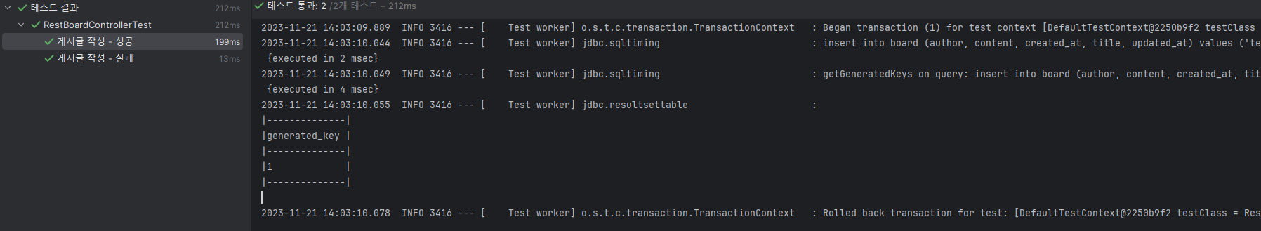 그럼 결과적으로 실제 DB와 분리된 테스트용 DB로 테스트를 진행할 수 있게 된다.