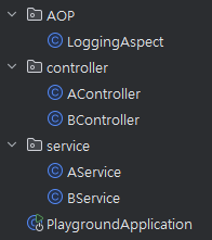 특별한 기능을 만들지 않을거기 때문에 그냥 A서비스, B서비스와 같이 호출되는 서비들과 컨트롤러를 생성해주었다.