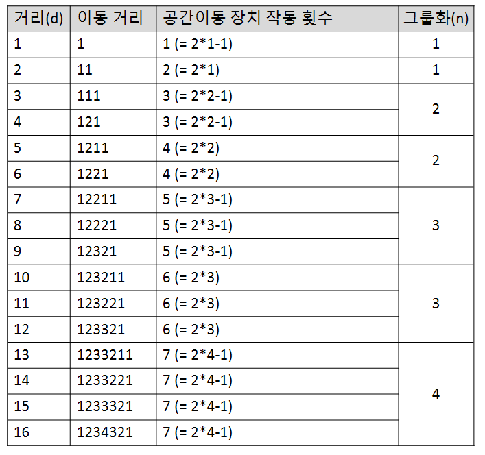 이동거리의 제곱근을 이용하여 장치 작동 횟수를 구할 수 있다.