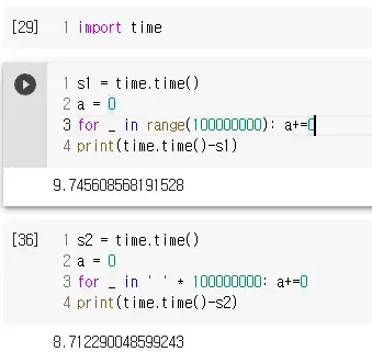 조금 찾아보니 range는 무에서 유를 생성해낸 후 for 문을 돌리고 문자열 복사는 이미 존재하는 문자열을 복사하여 동일한 객체를 삽입해서 돌리는 것이므로 문자열 복사 방법이 조금은 유의미하게 빠른 결과를 보인다고 한다.